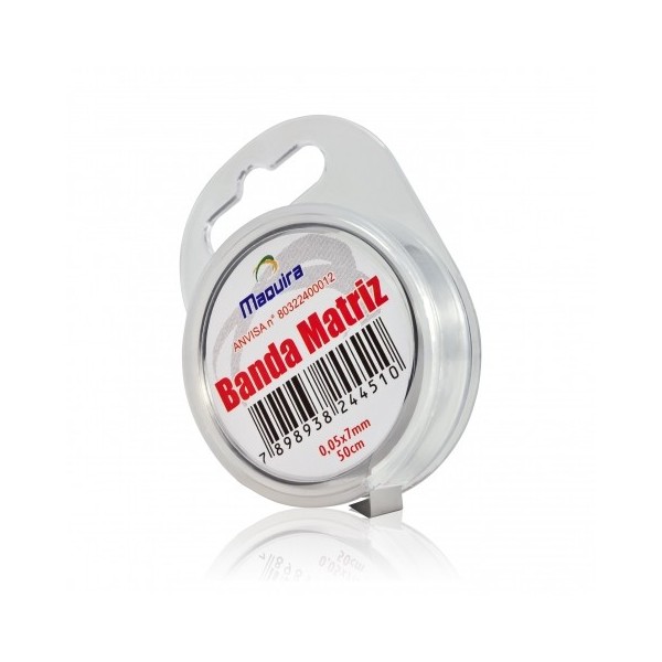 A BANDA MATRIZ é confeccionada de aço inoxidável. Indicada para reconstrução dental, possui uma superfície uniforme. Suas bordas não machucam o paciente, é de fácil aplicação e remoção sem danificar a restauração. Indicado para reconstrução de dentes posteriores. Promove o contorno proximal, sendo rígida o suficiente para não se descolar durante a condensação do amálgama.