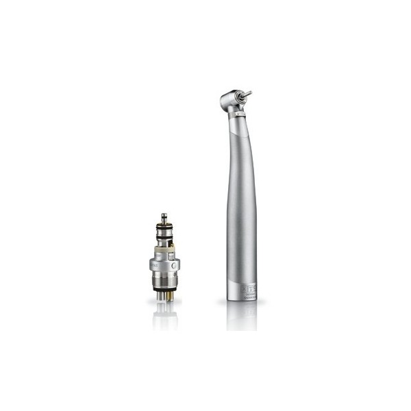 - Turbina mais ligeira, resistente e silenciosa, com uma cabeça de tamanho reduzido e munida de um sistema de arrefecimento automático para maior conforto do paciente, ideal para trabalhos de precisão, irrigação perfeita, luz LED de intensidade regulável.
