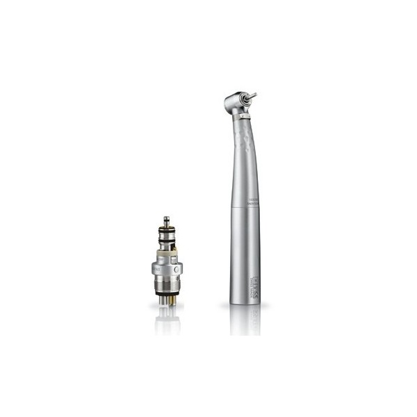 - Turbina mais ligeira, resistente e silenciosa, com uma cabeça de tamanho reduzido e munida de um sistema de arrefecimento automático para maior conforto do paciente, ideal para trabalhos de precisão, irrigação perfeita, luz halógena de intensidade regulável.